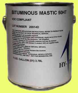 HyTech HT50 is a premium, tough, durable, VOC compliant, bituminous, based coating that provides for lasting protection of iron & steel pipe, tanks, flanges, bolts, and other bare structures. It is a high build, single component, coal tar mastic used for lasting protection against corrosion, and is particularly suited for quick repairs. HT50 contains less than 100 gms/liter VOC, which meets the most stringent VOC requirements. Can be applied to new and reconditioned pipe. When applied over light rust it will stop further deterioration. Meets requirements of an architectural coating and/or an Industrial Maintenance Coating. Excellent exterior durability and adhesion over metal, wood, and concrete surfaces. Can be used above and below grade.